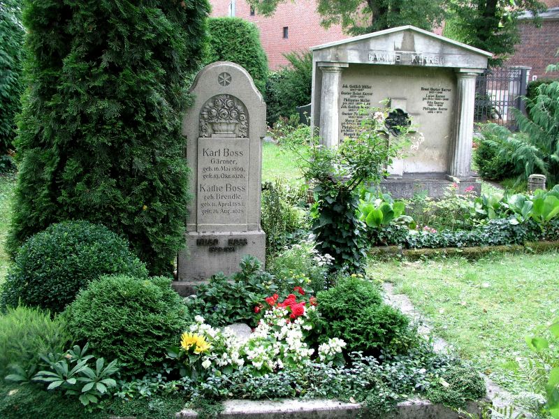 Das Grab ist gleich hinter dem Eingang auf der rechten Seite. Der Blick vom Eingang ist etwas verdeckt durch die Grabstätte der Familie Kurrer. Mich hat an Hugo Boss (1909 - 1999) begeistert, wie es ihm gelungen ist, nach den Militäruniformen die Uniformen von Corporate Germany zu schaffen.