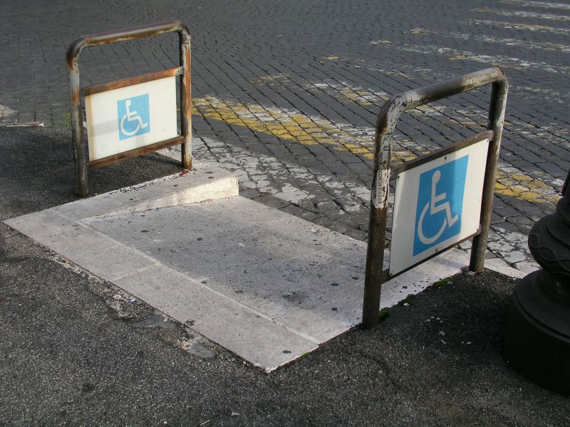 Wie in jeder Pilgerstadt sind auch in Rom Rollstuhlfahrer unterwegs, aber außerhalb des Vatikans wird das Leben für sie schwer. Die meisten Metrostationen haben keine Aufzüge, selbst Rolltreppen gibt es nicht überall. Beparkte und zu enge, holprige Gehwege erschweren die Fahrt zusätzlich.